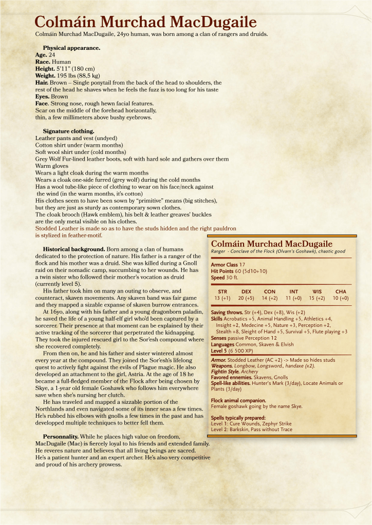 Anyway, here are the intro sheets of the characters. After session -1, I asked the players to send me bullet points about their history, something general, so I could place them in the setting…I wrote the stories and I’m kinda happy about them.
